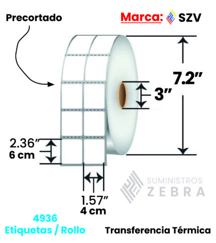 Rollo de 4936 Etiquetas Transferencia Térmica 4 cm x 6 cm Core3 2 Columnas