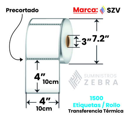 Rollo de 500 Etiqueta Transferencia Térmica 10 cm x 15 cm 4 x 6 Core1
