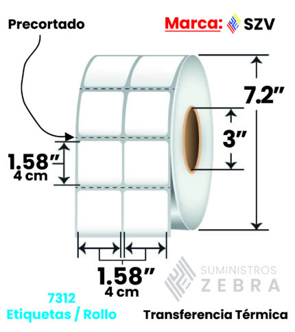 Rollo de 7312 Etiquetas Transferencia Térmica 4 cm x 4 cm Core3 2 Columnas