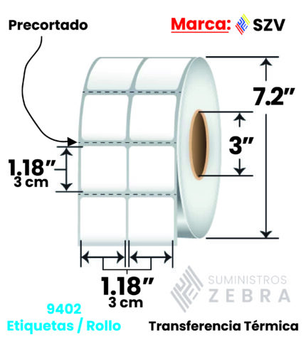 Rollo de 9402 Etiquetas Transferencia Térmica 3 cm x 3 cm Core3 2 Columna