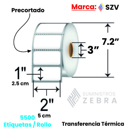 Rollo de 5500 Etiquetas Transferencia Térmica 5,0 x 2,5 cm 2 x 1″ Core3