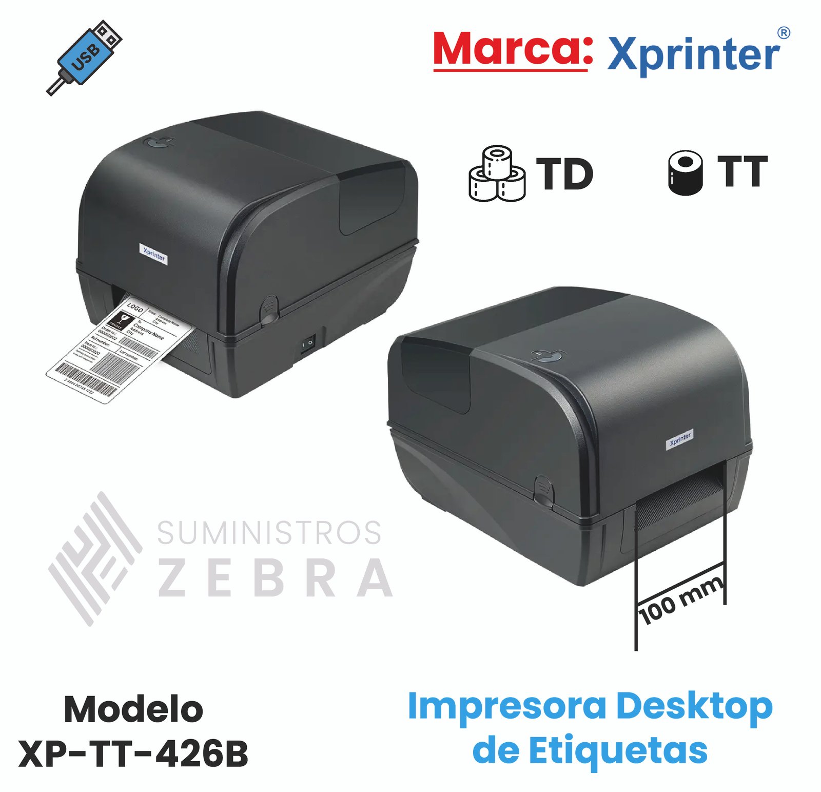 Impresora Desktop de Etiquetas Xprinter TT-426B USB