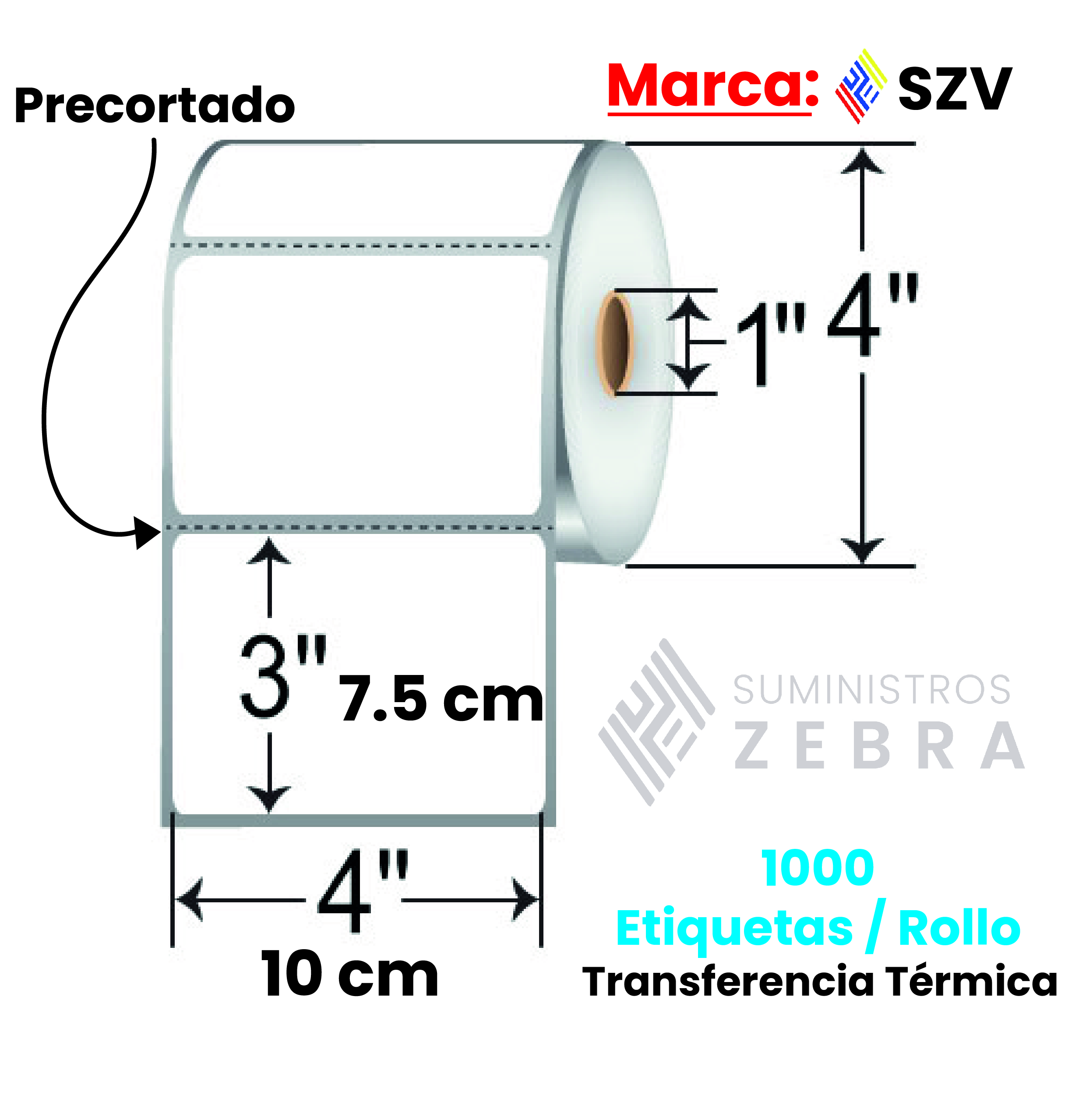 Rollo de 1000 Etiqueta Transferencia Térmica 10 cm x 7.5 cm 4 x 3 Core1