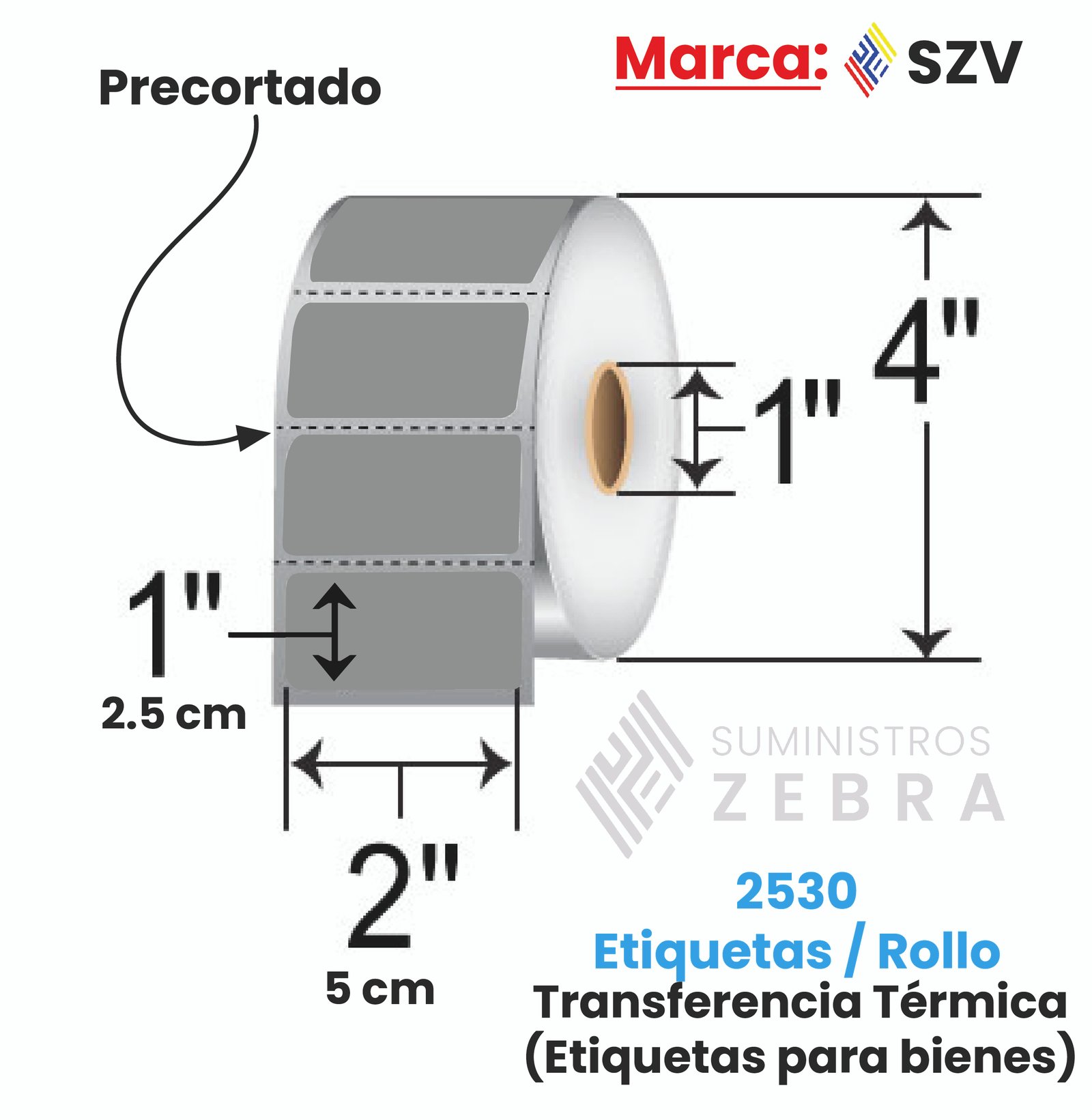 Rollo de 2530 Etiquetas Transferencia Térmica 5 cm x 2.5 cm Pet Silver Core 1