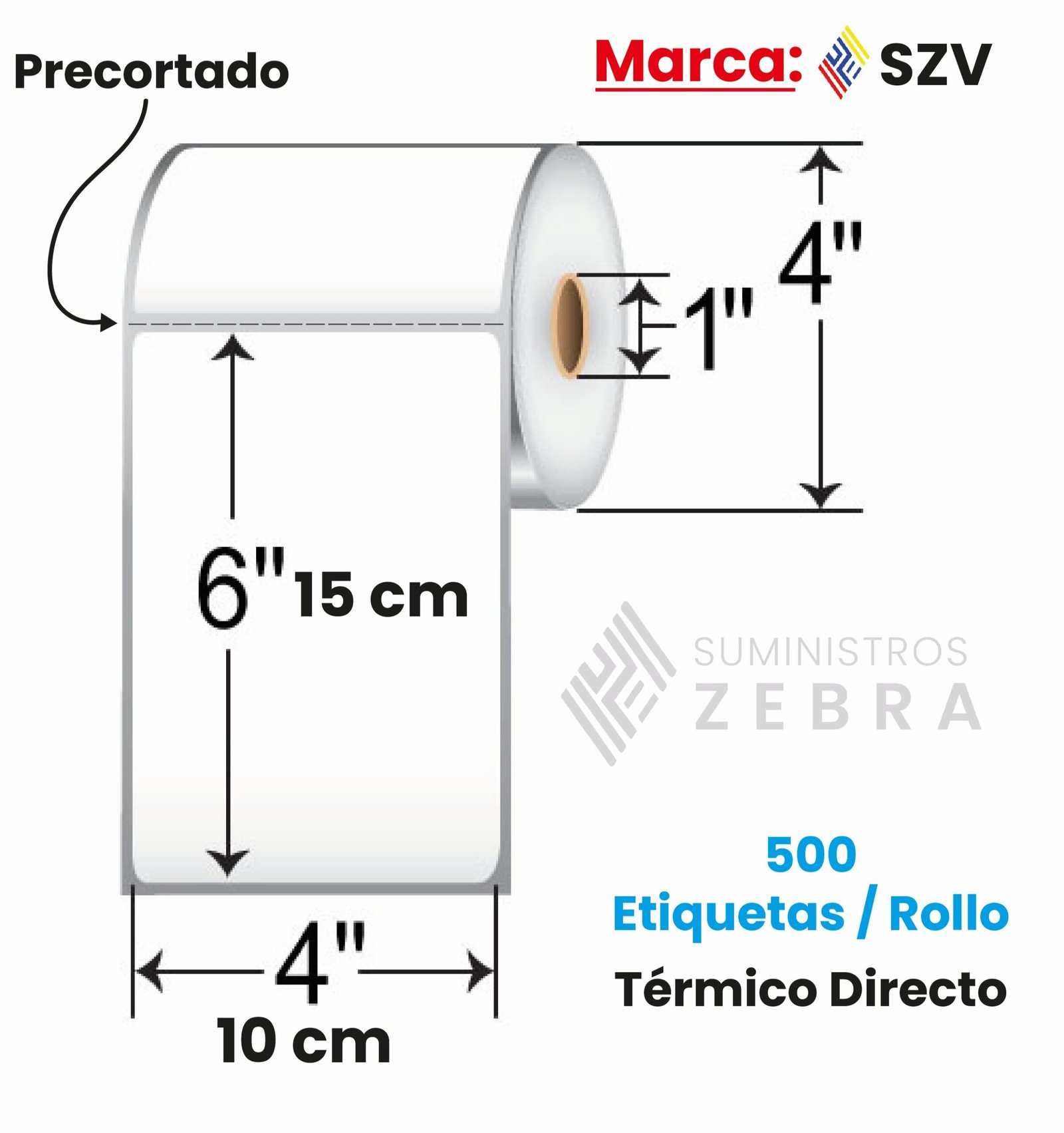 Rollo de 500 Etiquetas Térmico Directo 10 cm x 15 cm Core1