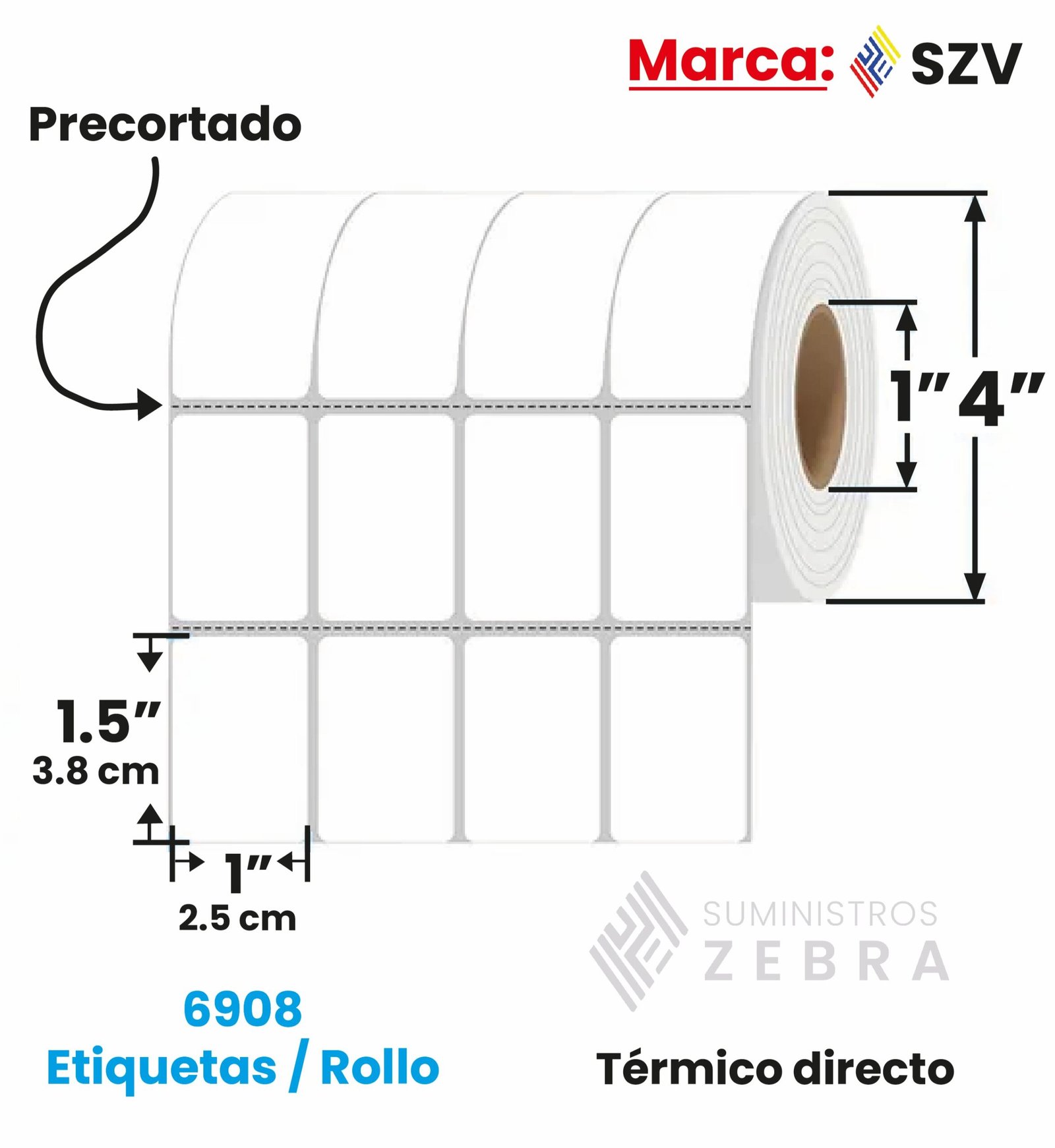 Rollo de 6908 Etiquetas Térmico Directo 2,5 cm x 3,8 cm Core1 4 Columnas