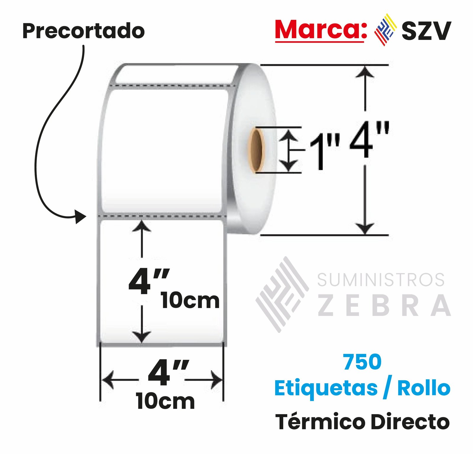 Rollo de 750 Etiquetas Térmico Directo 10 cm x 10 cm Core1