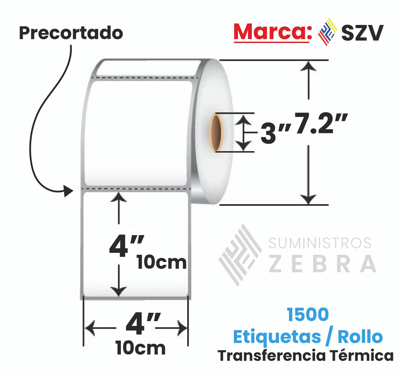 Rollo de 750 Etiquetas Trasnferencia Termica 10 cm x 10 cm Core1